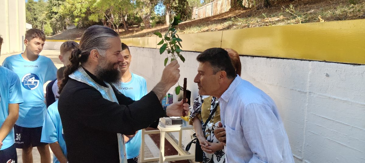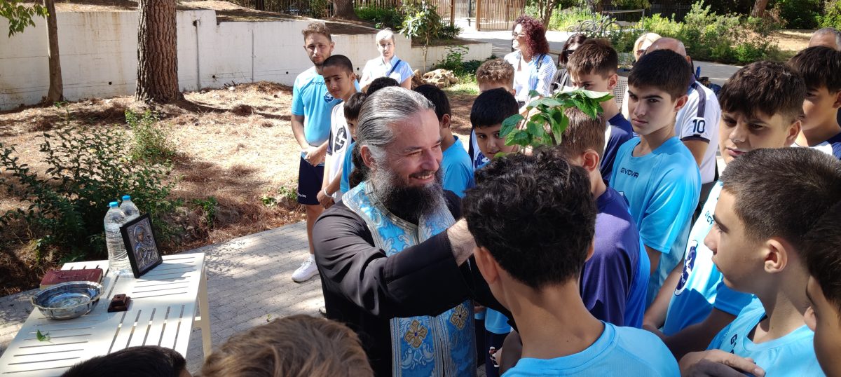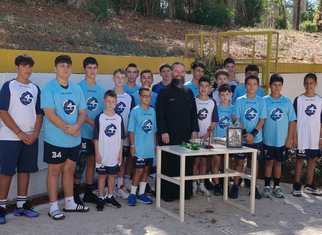 Ο αγιασμός τελέστηκε από τον Αρχιμανδρίτη Γεράσιμο Βλατίτση, ο οποίος με τις ευχές του για υγεία και πρόοδο, ευλόγησε τους μικρούς αθλητές και τις προσπάθειες των προπονητών.